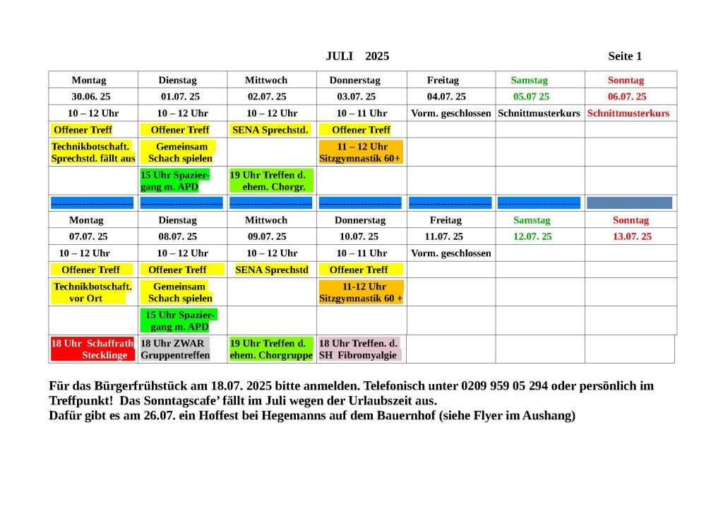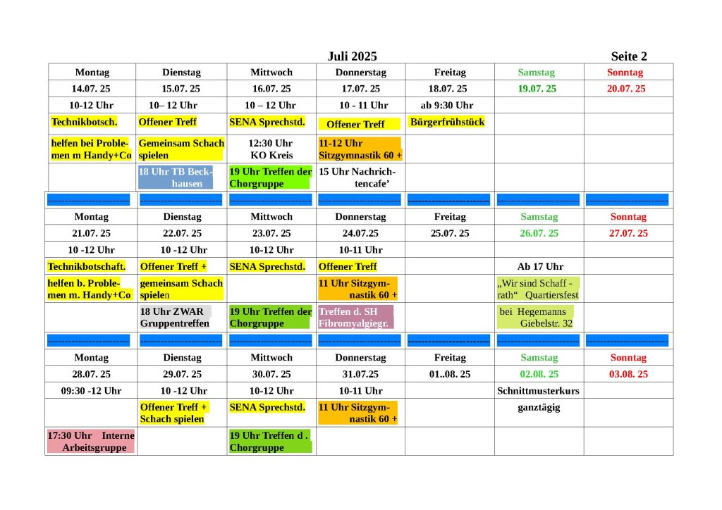 Monatsplan Juli 2025
