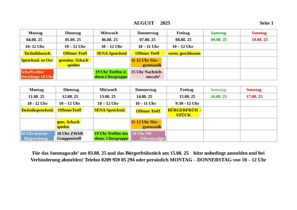 Monatsplan August 2025